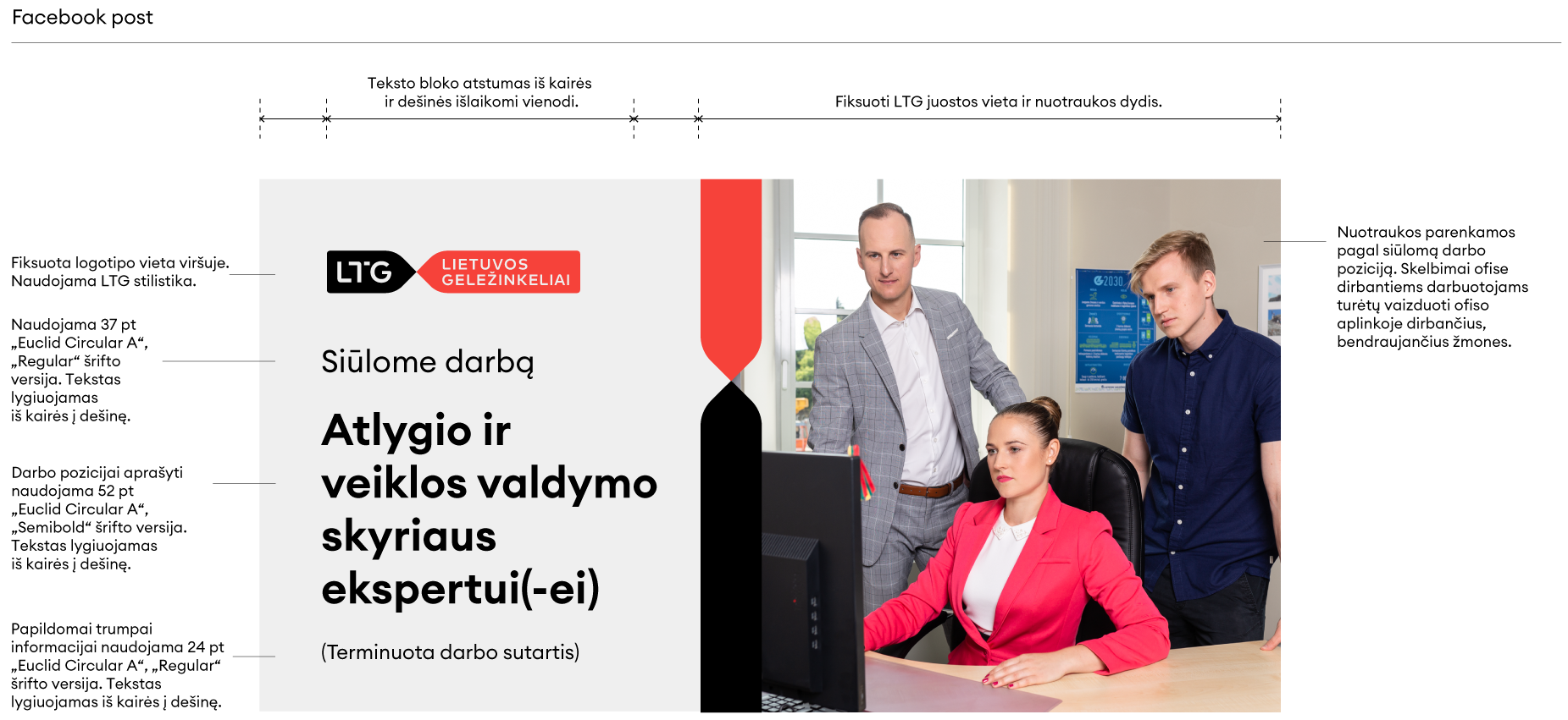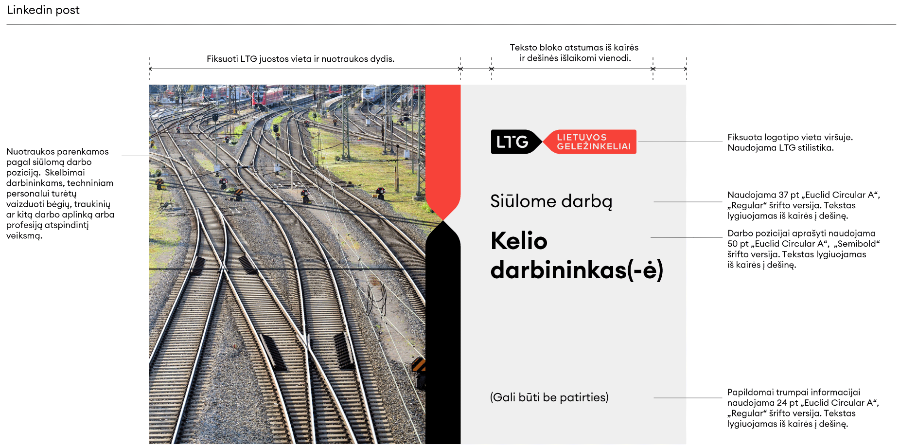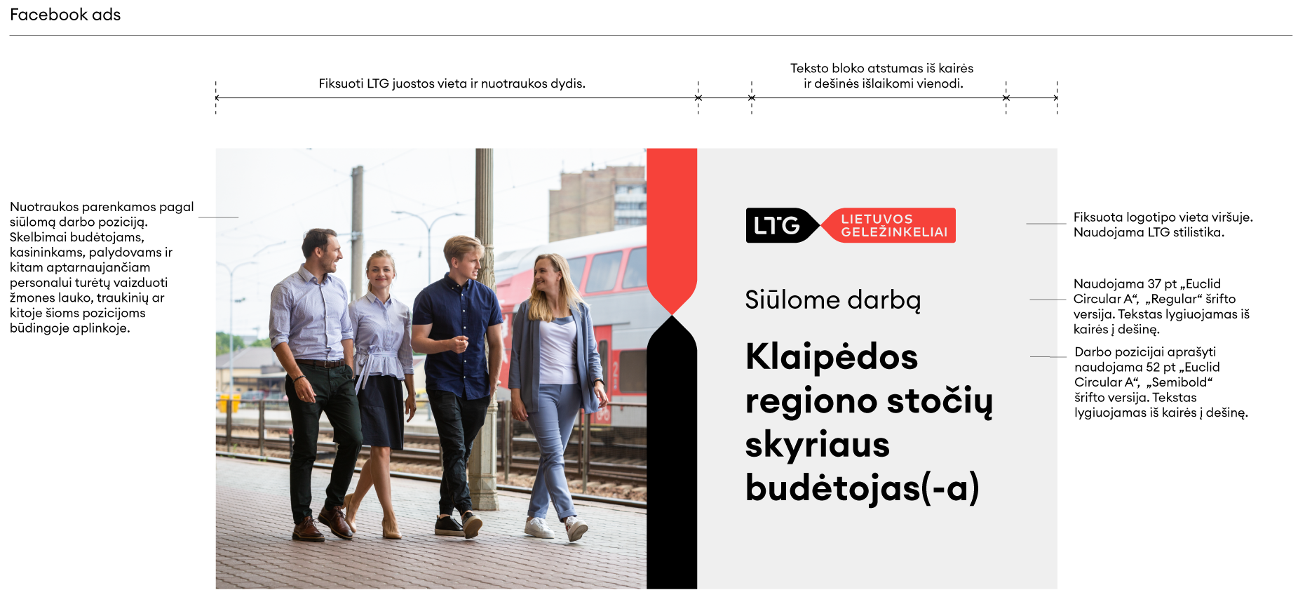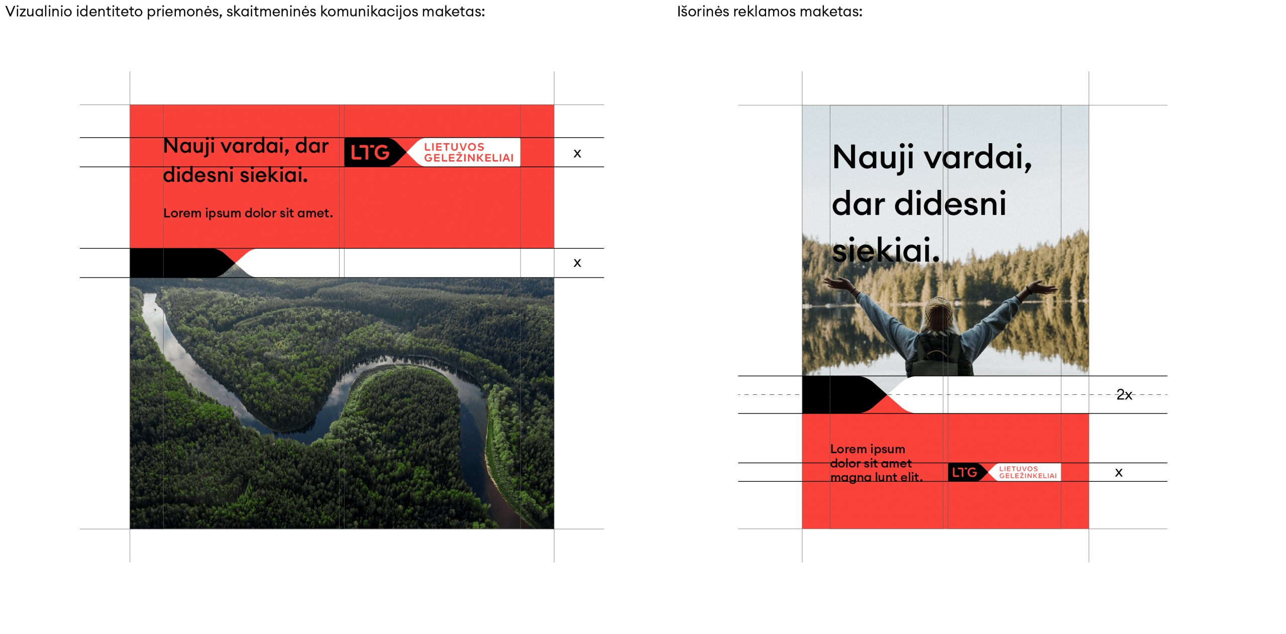 – Maketo kūrimui naudojame pagrindinius LTG elementus: spalvinį bloką, grafinį elementą (rodykles), ikonas. Šie elementai sukuria atpažįstamumą visoje LTG komunikacijoje.