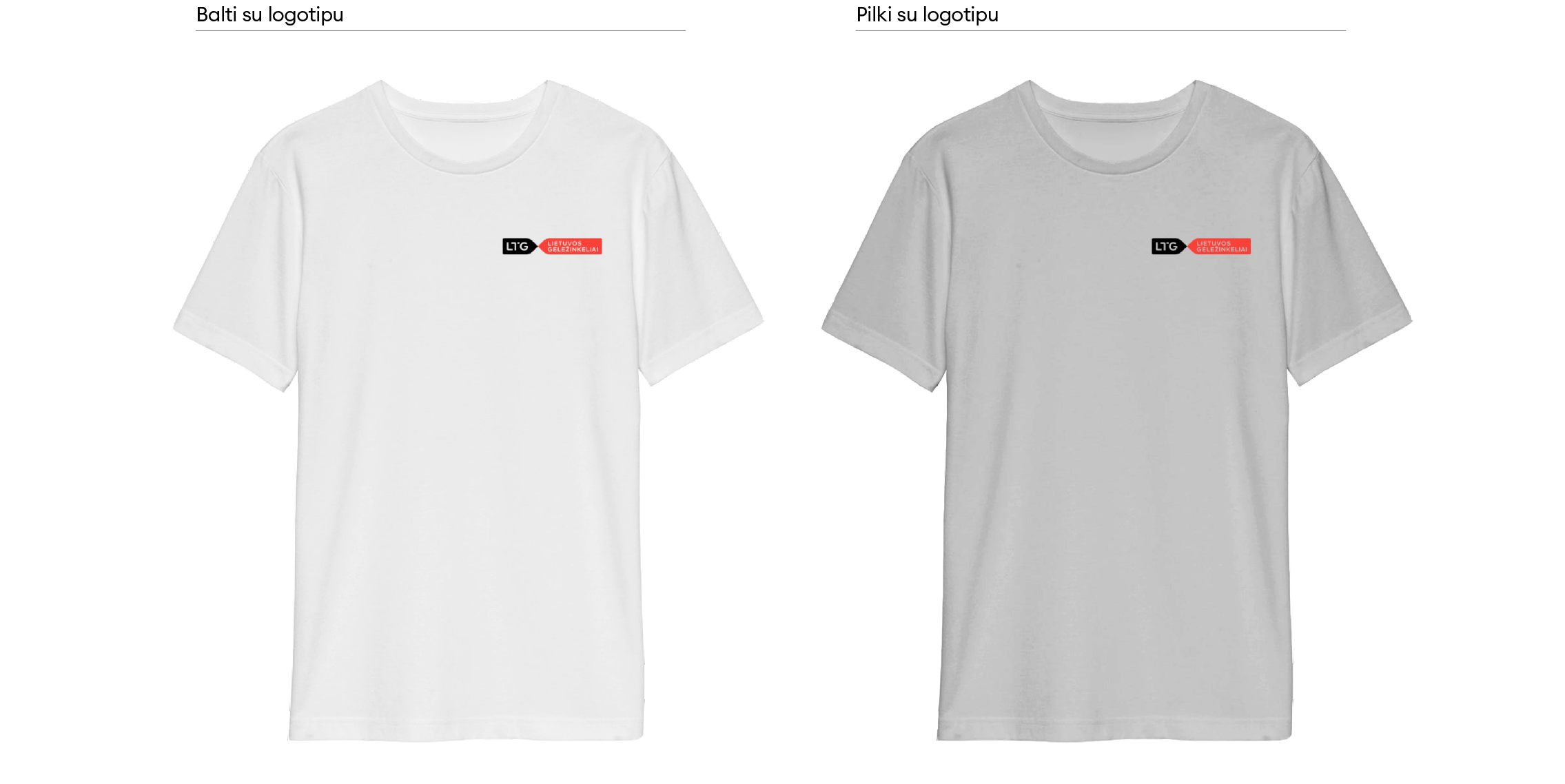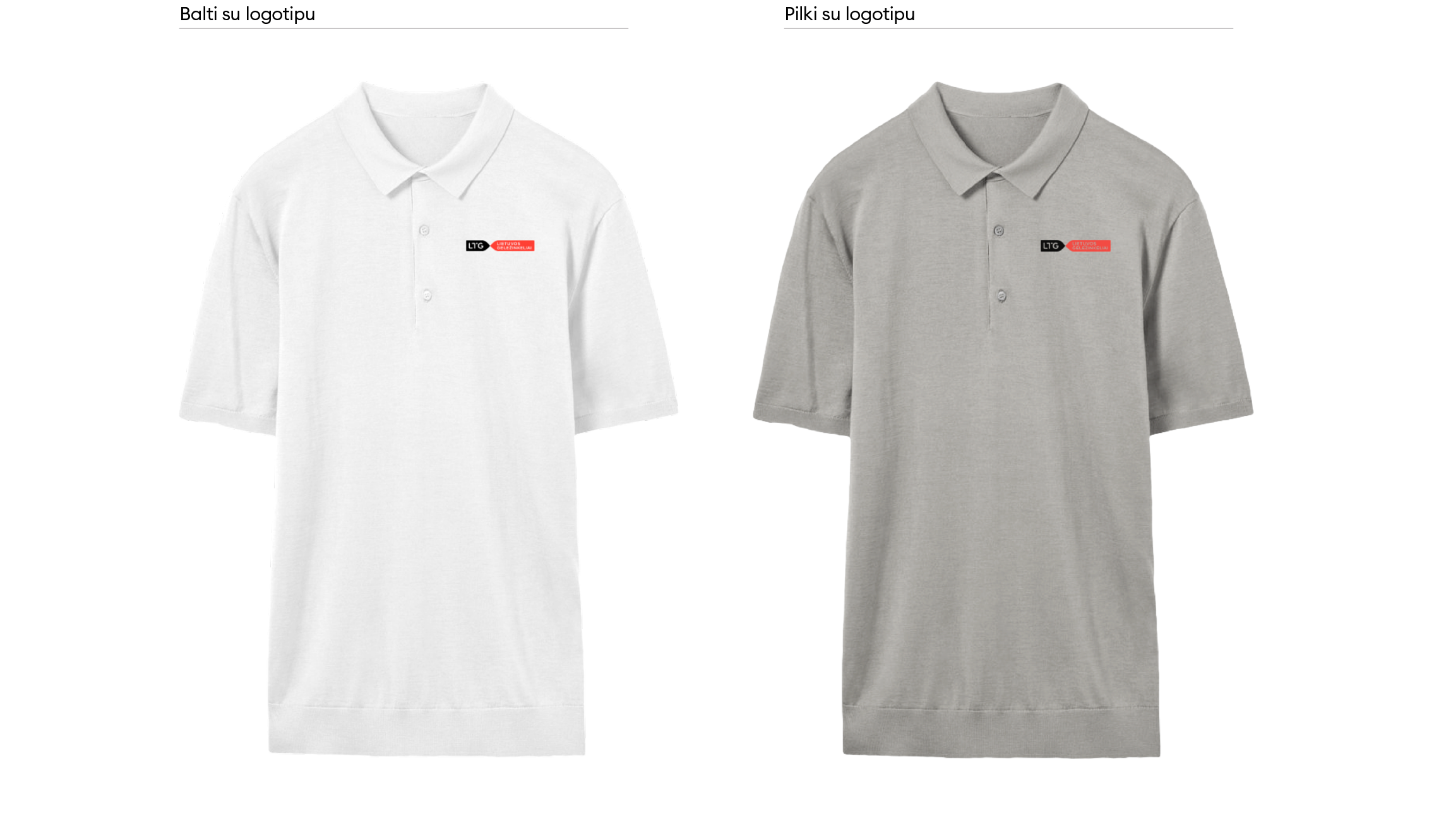 Naudojama pagrindinė logotipo versija. Logotipas: jei yra galimybė – siuvinėtas, jei ne – naudojama spauda. Preliminarūs logotipo išmatavimai:  90 x 15 mm