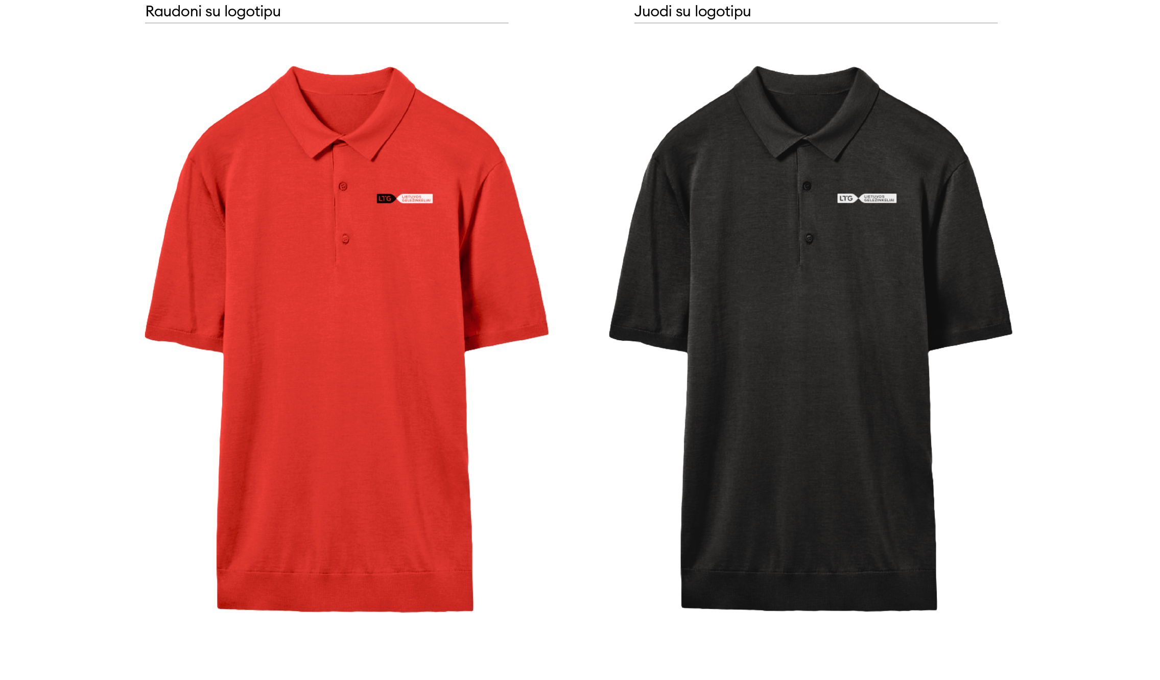 Naudojama pagrindinė logotipo versija. Logotipas: jei yra galimybė – siuvinėtas, jei ne – naudojama spauda. Preliminarūs logotipo išmatavimai:  60 x 10 mm