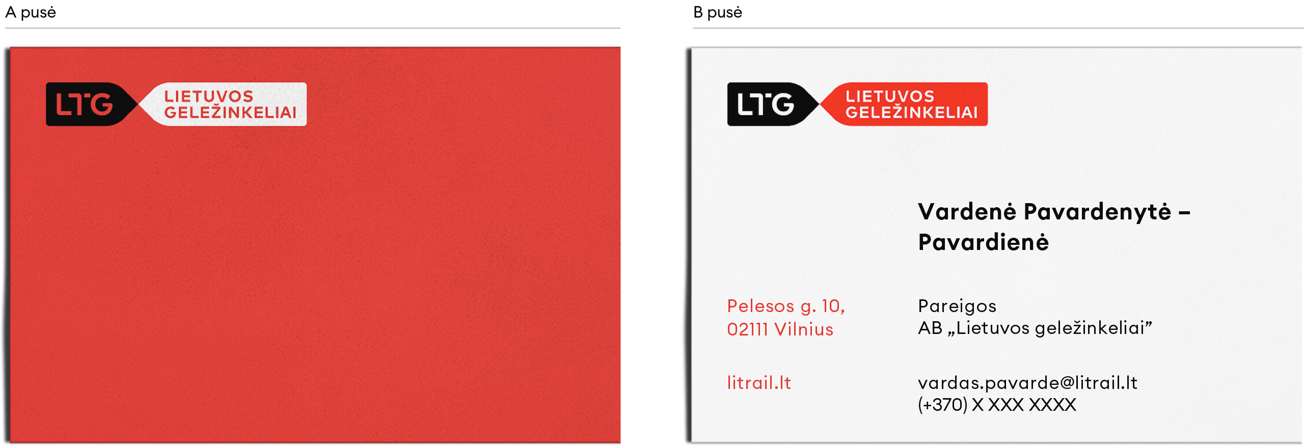 Žemiau pateikiamas vizitinės kortelės dizaino pavyzdys, prieš naudojimą rekomenduojame peržiūrėti ir atnaujinti rekvizitus bei kitą asmeninę ar juridinę informaciją.
