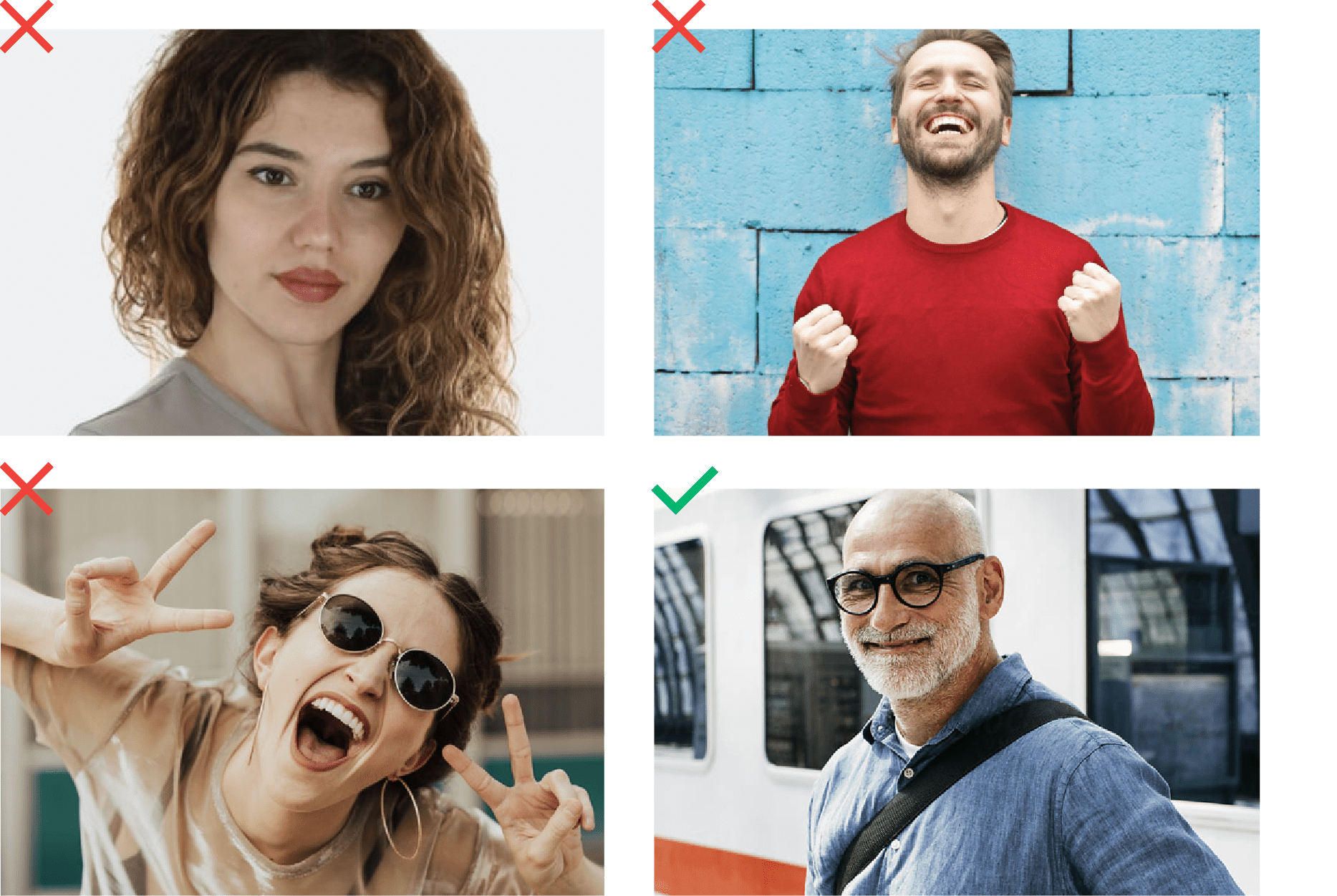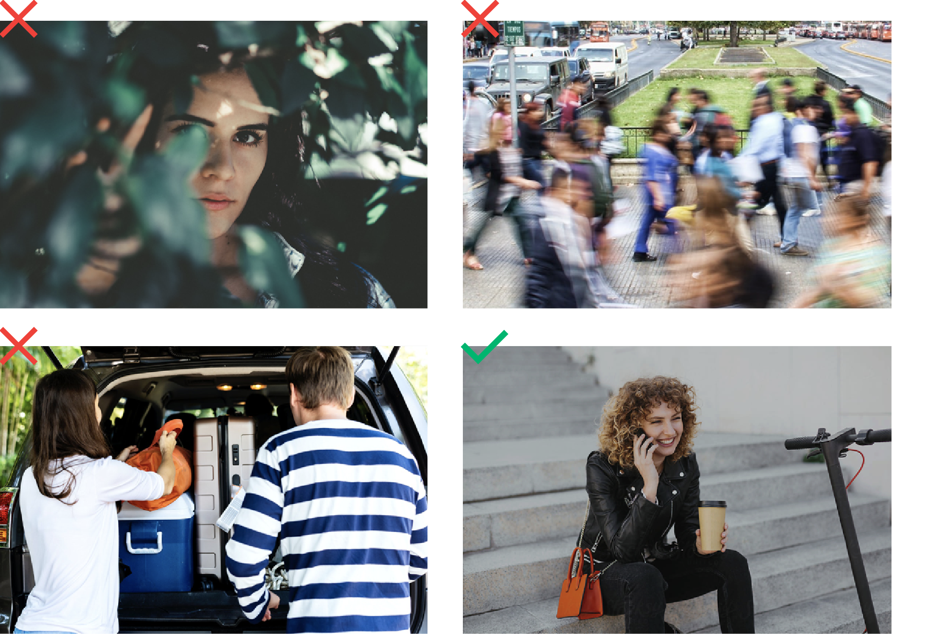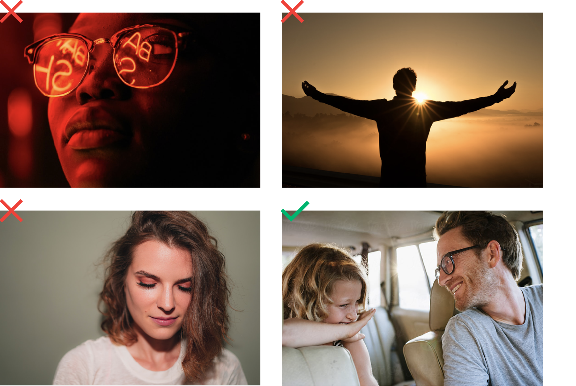 Dirbtinės pozos ir emocijos: nuotraukos turi atrodyti natūraliai, pozos ir emocijos – nesuvaidintos. Fotografuojant žmones svarbu juos užfiksuoti akių lygyje.