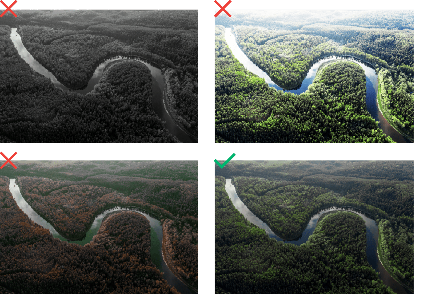 Dramatiškas, nenatūralus apšvietimas: šviesos ir šešėlio santykis nuotraukose neturi būti pernelyg kontrastingas.