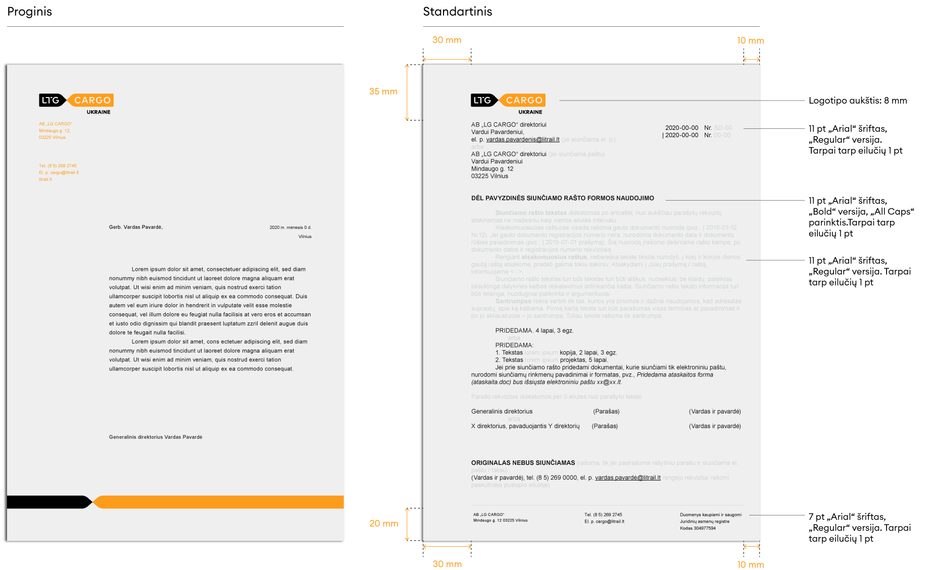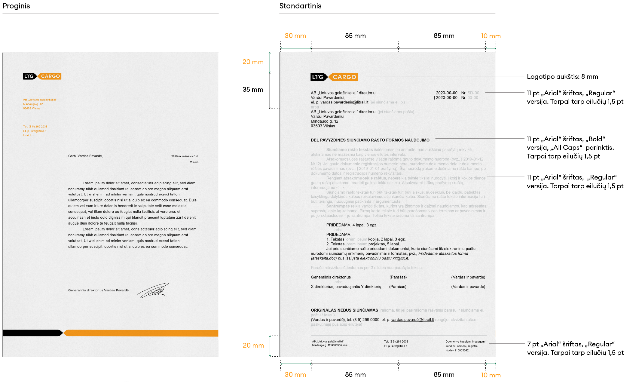 Oficialiuose dokumentuose ir šablonuose (firminiuose blankuose, prezentacijose) gali būti naudojamas sisteminis šriftas „Arial”.
