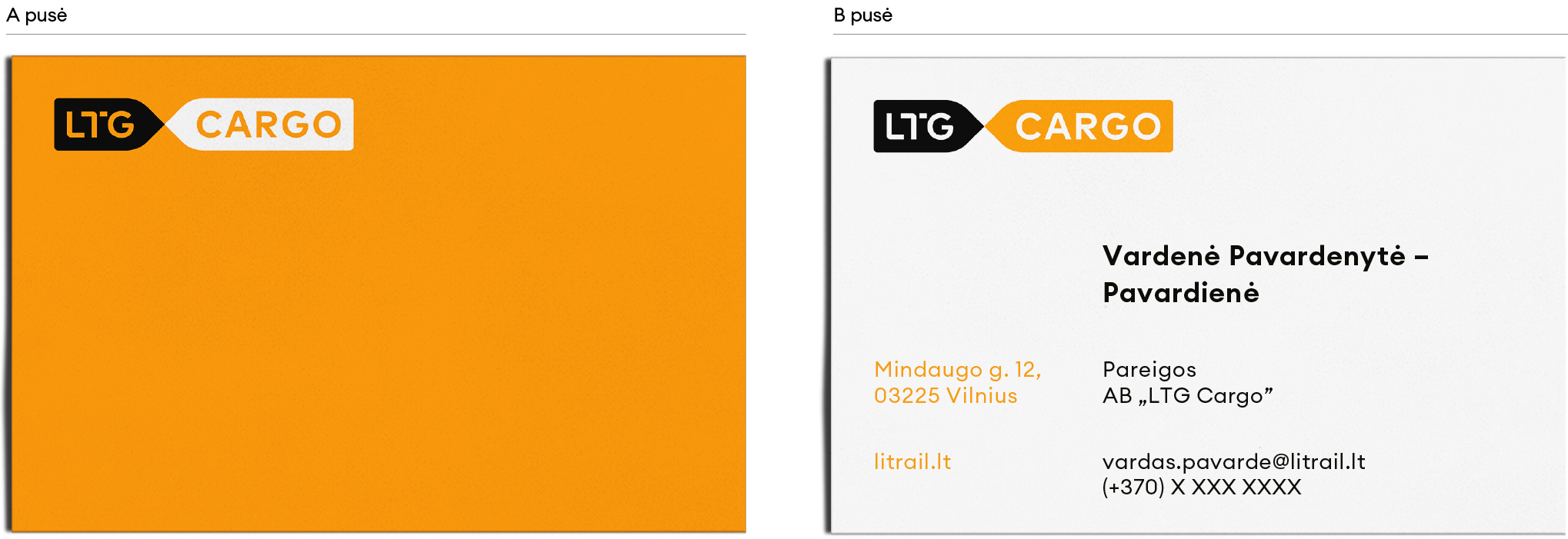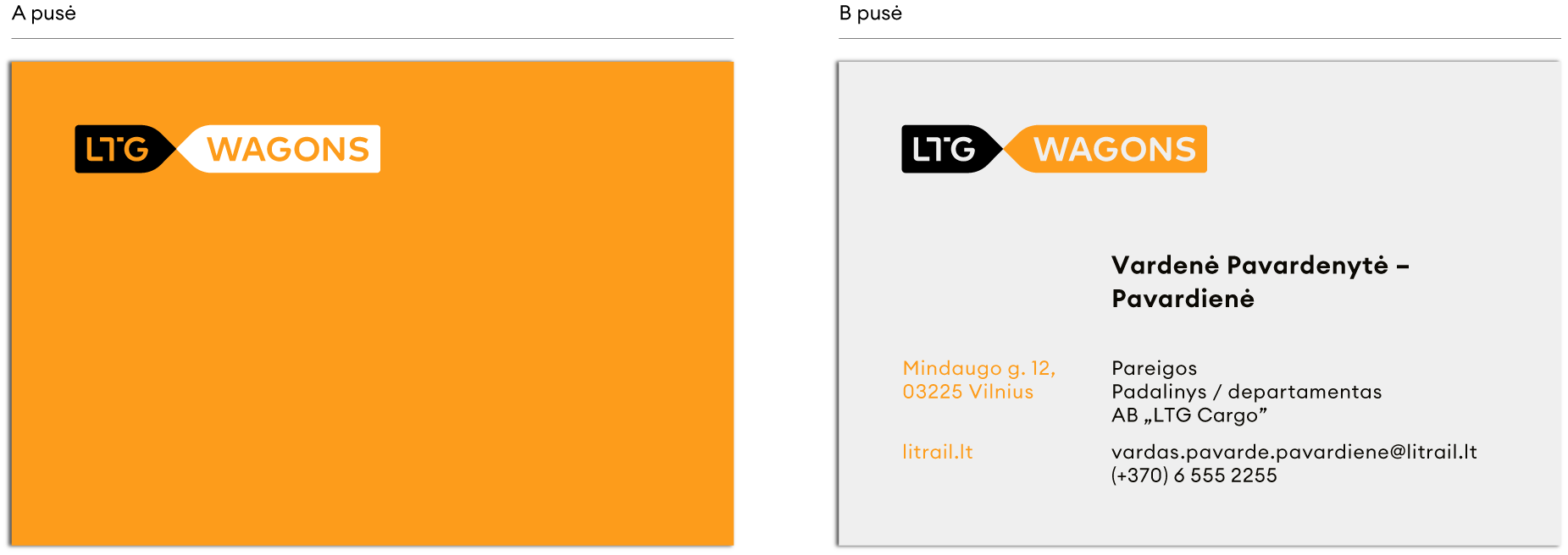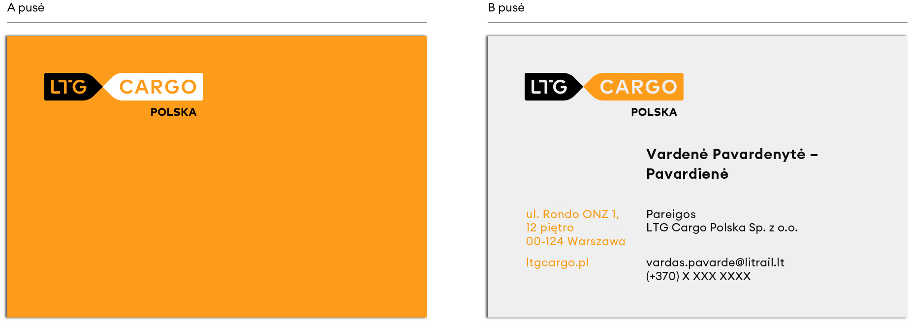 Žemiau pateikiamas vizitinės kortelės dizaino pavyzdys, prieš naudojimą rekomenduojame peržiūrėti ir atnaujinti rekvizitus bei kitą asmeninę ar juridinę informaciją.