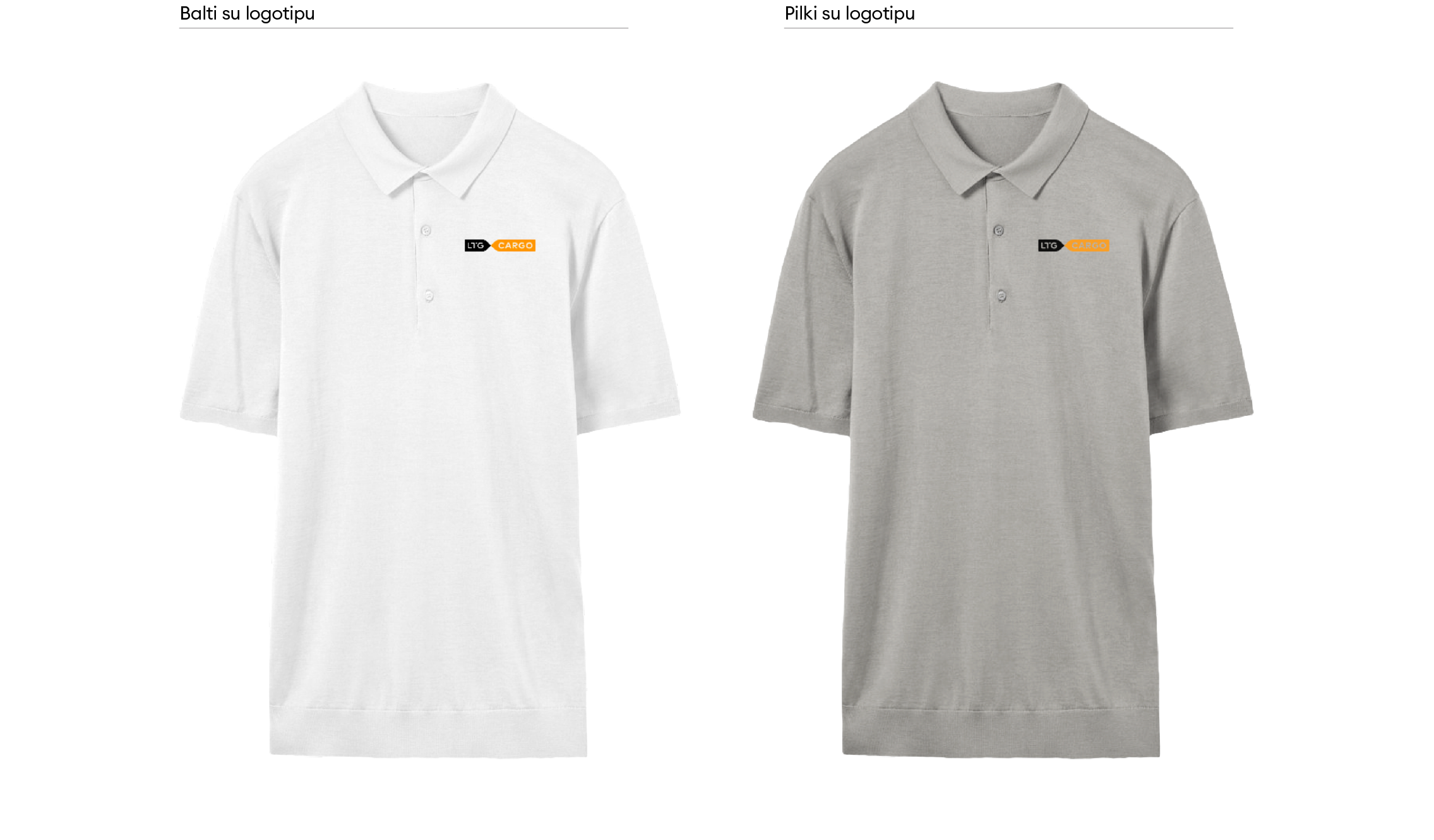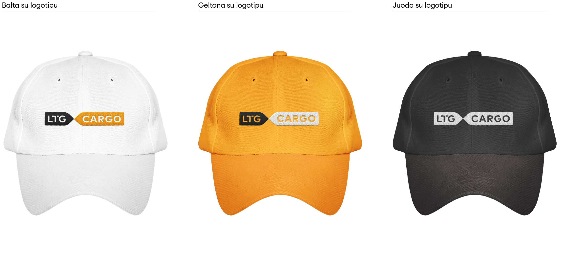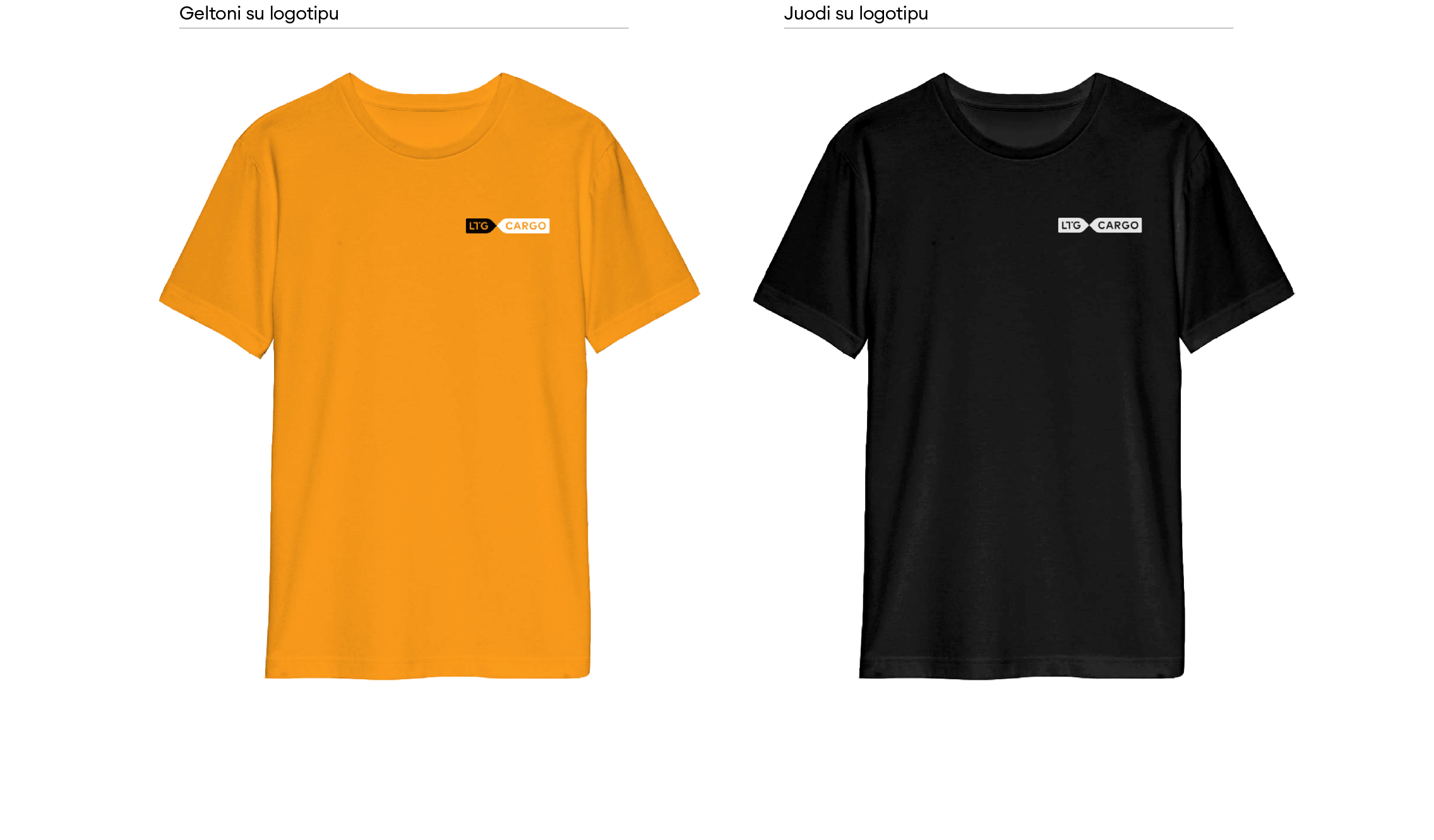 „LTG Cargo“ logotipas turi keletą skirtingų versijų. Visada naudojame pagrindinę, spalvotą, logotipo versiją. Ant spalvoto fono – pagrindinę juodai baltą arba juodą ženklo versiją. Jei dėl spaudos apribojimų ar kitų priežasčių nėra galimybės rinktis šių versijų, galime naudoti linijinę arba versiją su užpildytomis logotipo raidėmis.