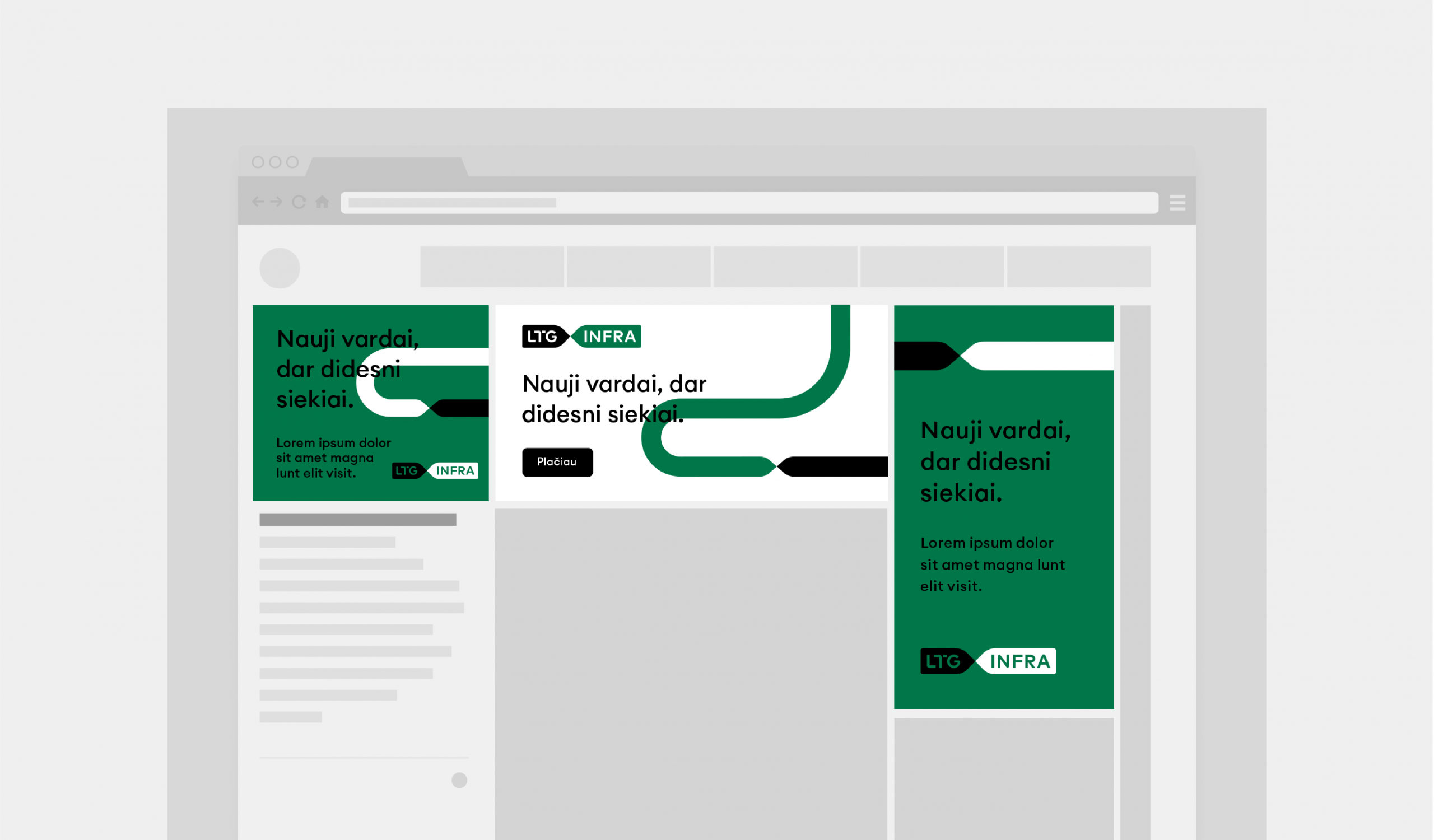 Grafiniame linijos elemente niekada nenaudojame logotipo ar kitų elementų, kurie pažeistų ar kitaip iškraipytų bendrą LTG grupės identitetą bei vizualines taisykles.