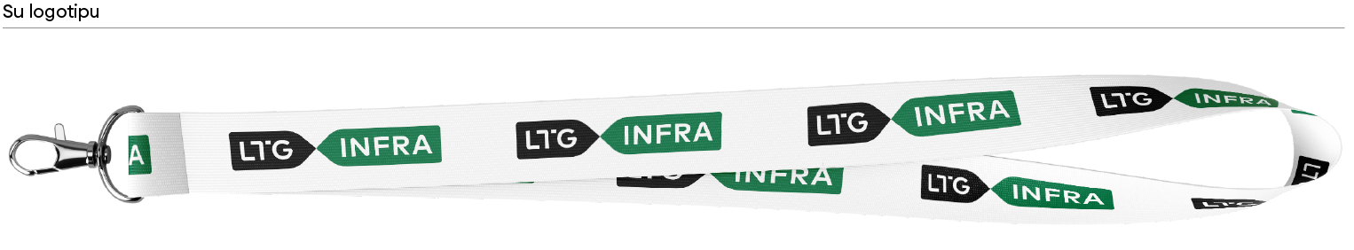 Naudojama pagrindinė logotipo versija. Logotipas: jei yra galimybė – siuvinėtas, jei ne – naudojama spauda. Preliminarūs logotipo išmatavimai: 78 x 15 mm